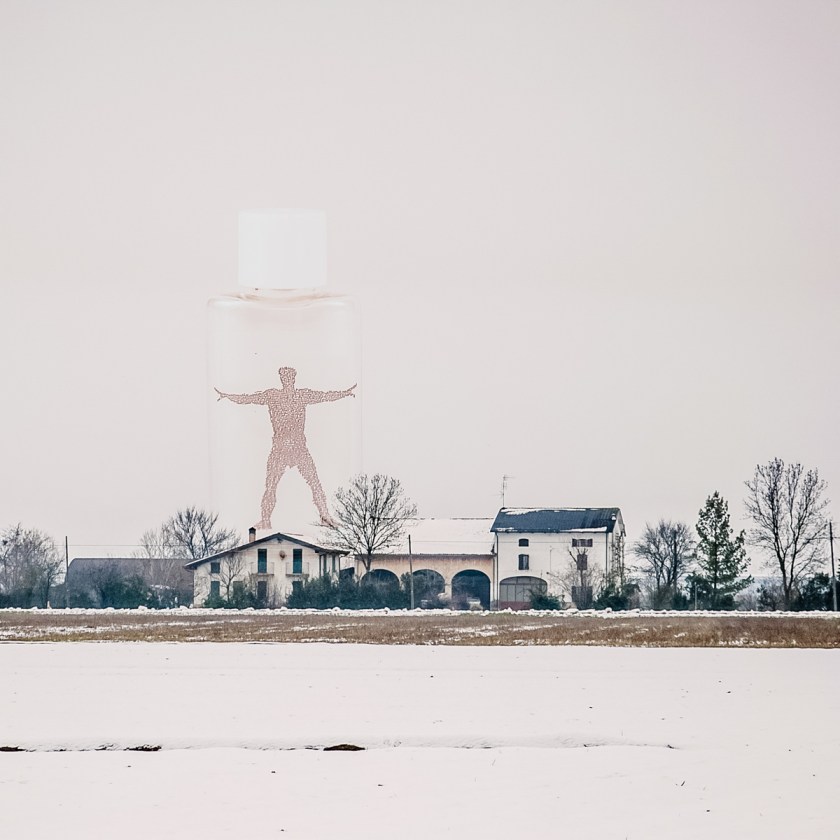 L’individuo è in relazione con un ambiente schematizzato e parzialmente o totalmente celato così da trovarsi costantemente in bilico tra le due dimensioni.